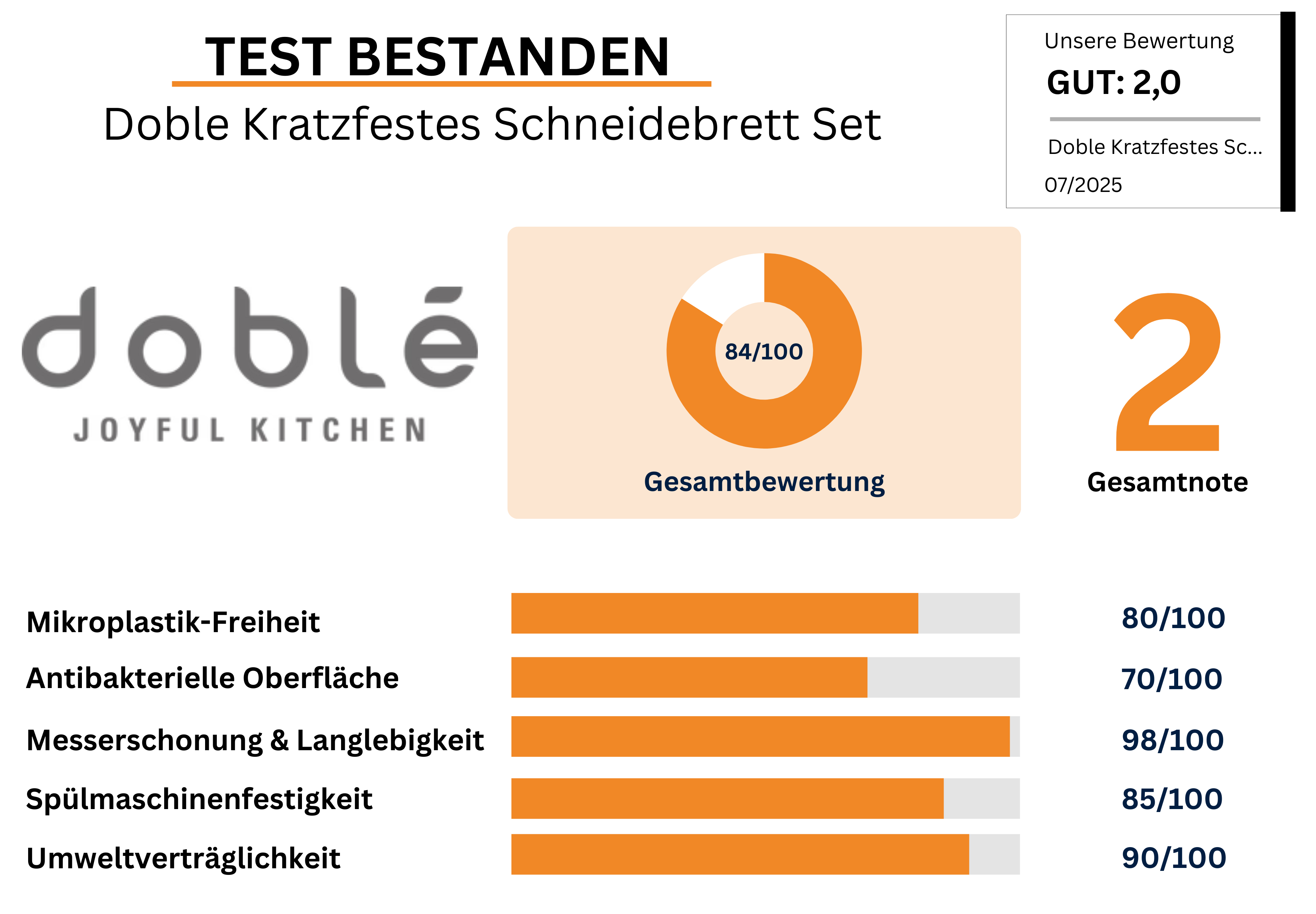 Wir haben über 50 Schneidebretter getestet und dabei alle wichtigen Sicherheits- und Qualitätskriterien berücksichtigt. Die gute Nachricht: Ein Produkt sticht eindeutig hervor und bietet echten Schutz für Ihre Familie. Dieser klare Testsieger reduziert nicht nur die Mikroplastik-Belastung, sondern gewährleistet auch optimale Hygiene und schont dabei hochwertige Messer.