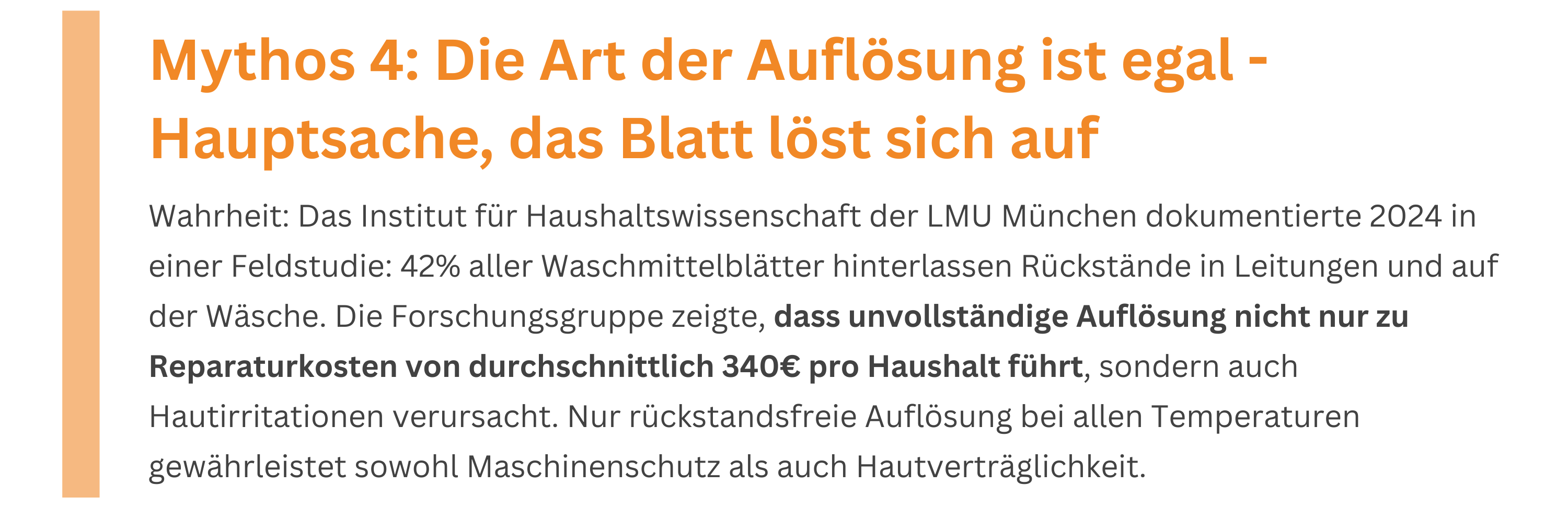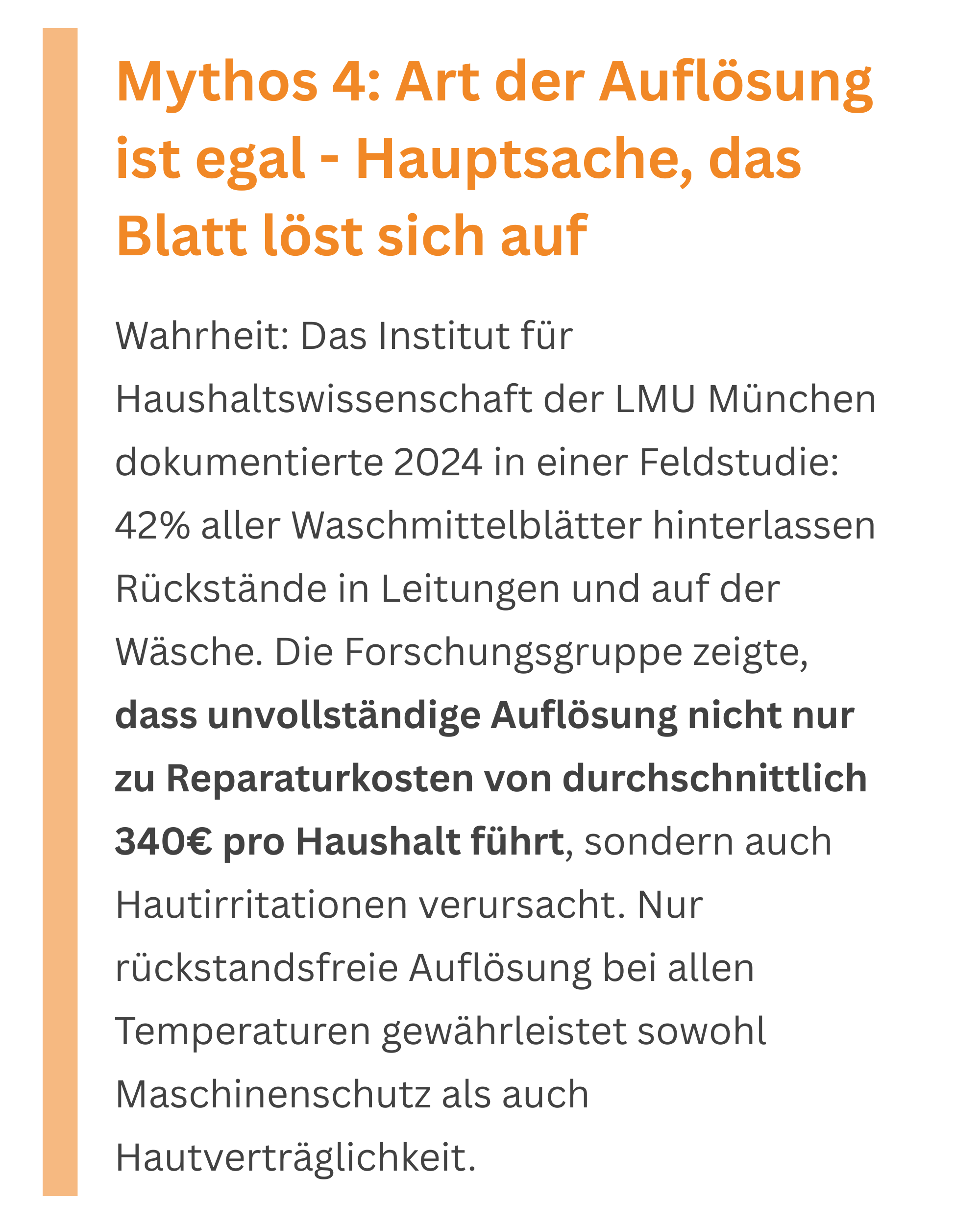 Unsere Auflösungstests zeigen dramatische Unterschiede in der Temperaturstabilität. Während Silikon-basierte Blätter bei unter 40°C zu 15% ungelöst bleiben, erreichen optimierte Formulierungen bei jeder Temperatur 100% Auflösung. Zusätzlich kritisch: Spülmaschinenresistente Rückstände können Pumpen und Siebe dauerhaft schädigen. Nur bei garantierter Komplettauflösung kann die Waschmaschine ihre natürliche Lebensdauer vollständig erreichen. Rückstandsbildende Blätter verursachen in Servicetests messbare Folgeschäden von 180-450€.