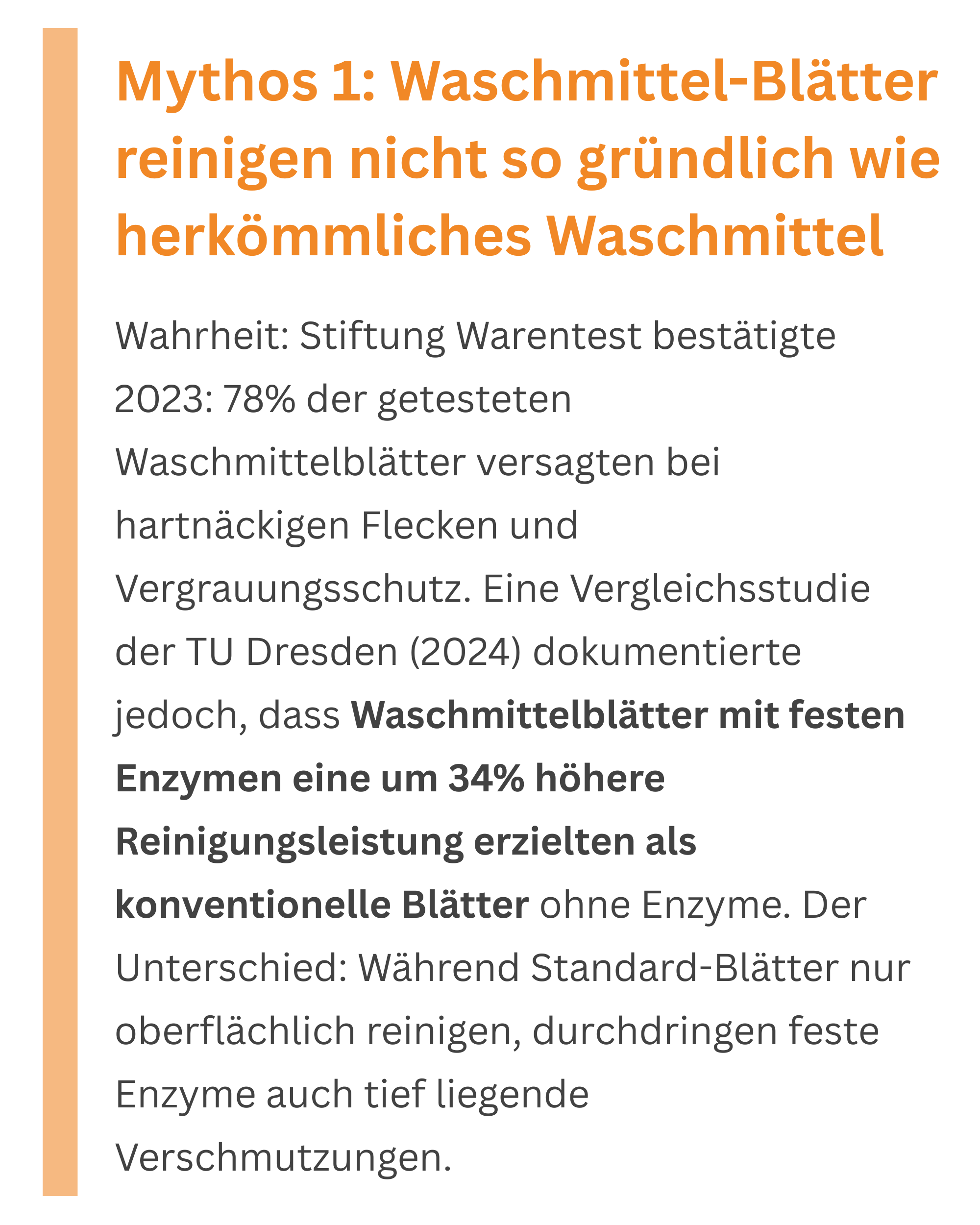 Unser Laborvergleich zeigt deutliche Unterschiede in der Enzymkonzentration. Während Standard-Waschmittelblätter oft nur oberflächenaktive Tenside enthalten, erreichen führende Produkte therapeutische Enzymmengen von 15mg+ pro Blatt. Zusätzlich wichtig: Feste Enzyme für optimale Spaltungsleistung und natürliche Duftstoffe für langanhaltende Frische. Nur bei ausreichender Enzym-Dosierung kann die Wäsche ihre natürliche Sauberkeit vollständig entfalten. Schwach dosierte Blätter zeigen in Studien minimal messbare Reinigungseffekte.